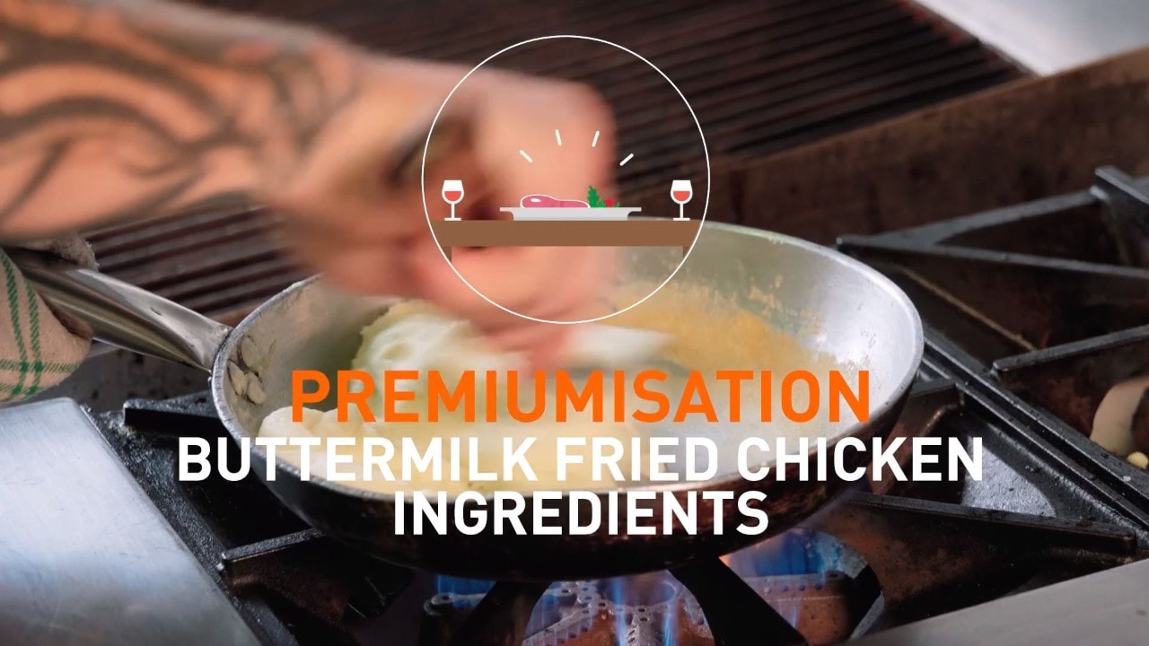El chef Dietrich, jefe de cocina de Coobs en Johannesburgo, nos presenta la “premiumización”, el concepto de preparar algo delicioso con ingredientes cotidianos. Prueba con dos platos: salchichas con puré de patatas y pollo rebozado en mantequilla con patatas fritas.